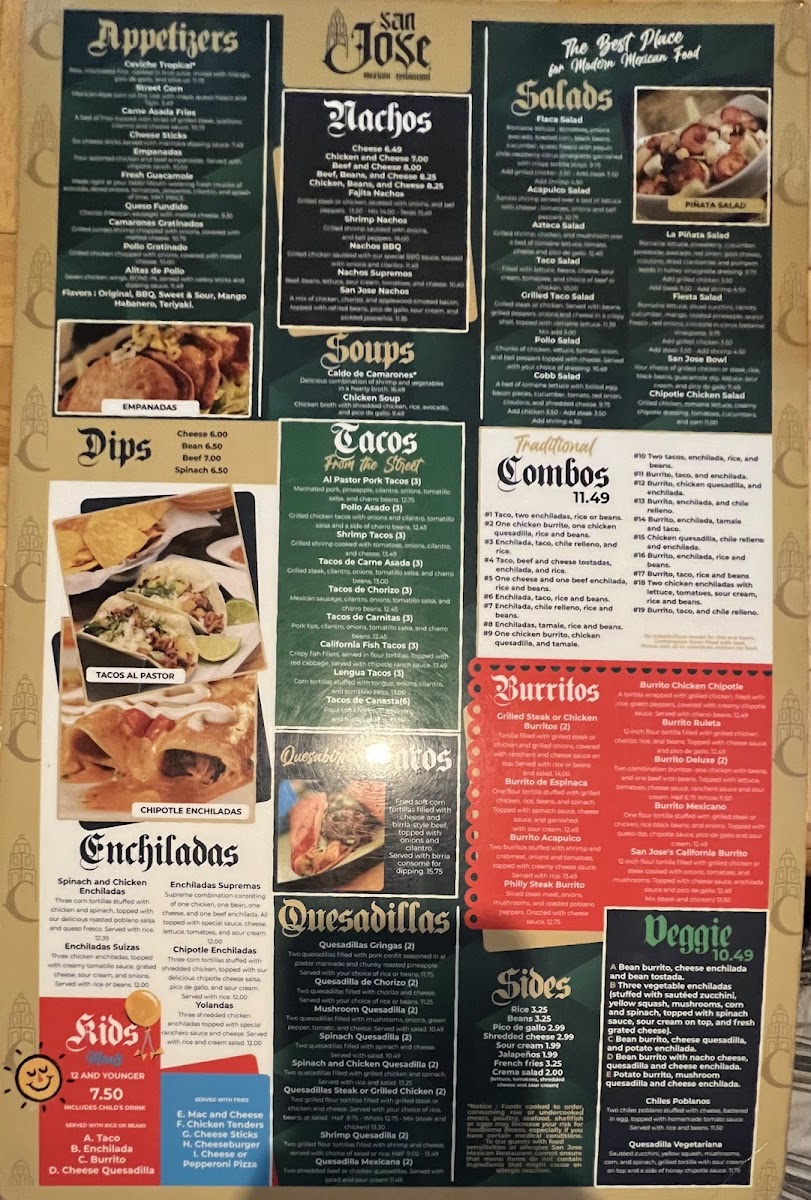 The attentive service, highlighted by friendly staff and an inviting atmosphere, guarantees a memorable dining experience. Whether you're here for a family dinner or a casual meal, San Jose promises robust flavors and a warm ambiance that will make you want to return.